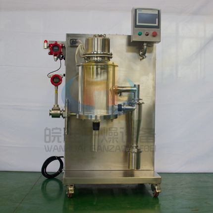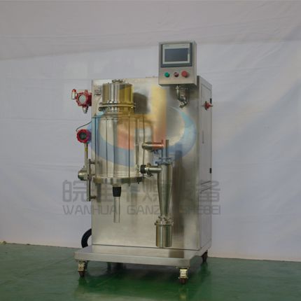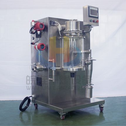 小型噴霧干燥機(jī)主要在科研階段對(duì)溶液或流體樣品進(jìn)行噴霧干燥成粉或微小顆粒。其原理是通過(guò)霧化器將樣品霧化成微細(xì)霧滴,進(jìn)入干燥室內(nèi)進(jìn)行熱交換,水份瞬間蒸發(fā),固體經(jīng)過(guò)旋風(fēng)分離器進(jìn)行回收,飽和氣體經(jīng)過(guò)除塵器過(guò)濾后排空,本設(shè)備可應(yīng)用于從試驗(yàn)室到一般研究室的噴霧干燥作業(yè),在食品醫(yī)藥化工行業(yè)均可良好的應(yīng)用。